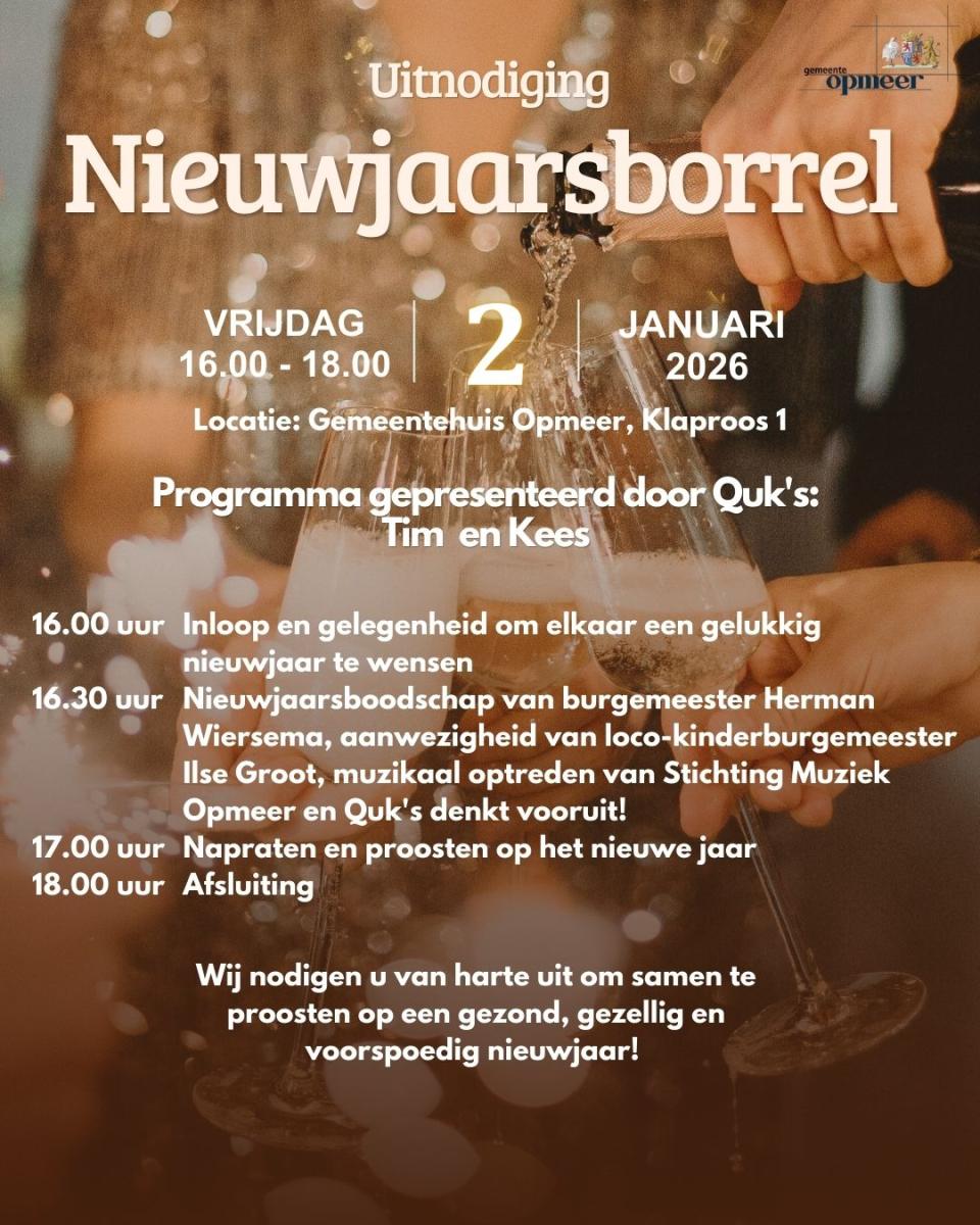 2 januari: Nieuwjaarsreceptie gemeente Opmeer